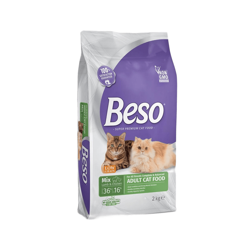 Give your cat the gift of optimal health and vitality with Beso Complete and Balanced Mix Lamb and Chicken Adult Dry Cat Food – because they deserve the best! 🐾
